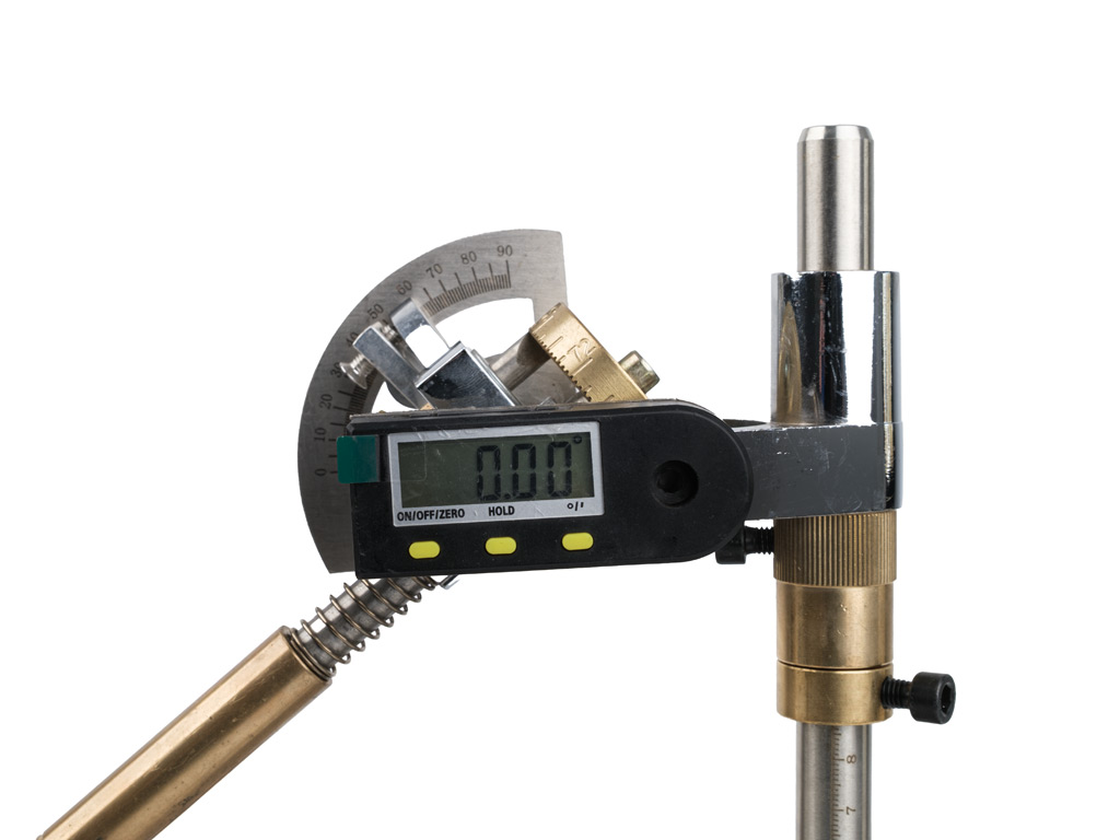 Stein wird auf einer DOP-Stange montiert und von einem verstellbaren Arm mit einer Skala geführt, mit der der Winkel des Schliffs präzise eingestellt werden kann - ein Schlüsselparameter für die Entstehung jeder Facette und das endgültige Aussehen des geschliffenen Steins. Der Arm kann fest arretiert werden, was eine hohe Wiederholbarkeit der einzelnen Schliffe und ein einheitliches Ergebnis gewährleistet. Eine wesentliche Rolle spielt dabei der DOP-Halter, der den Stein nicht nur durch Verkleben festhält
