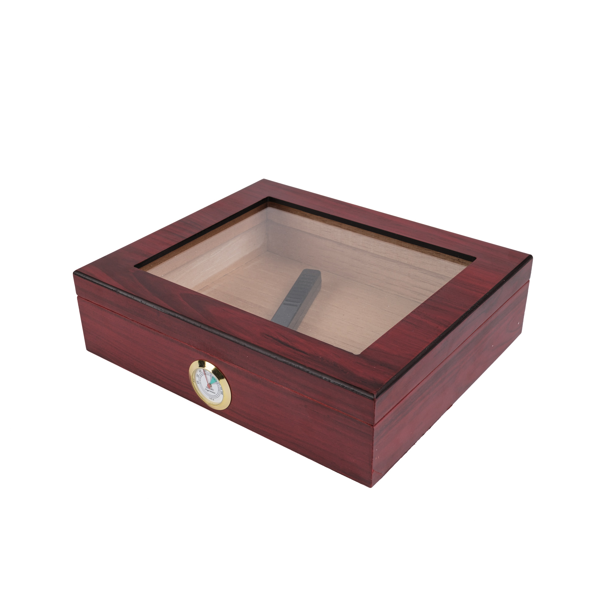 Humidor für 25 Zigarren - rot-braun mit analogem Hygrometer und Befeuchter