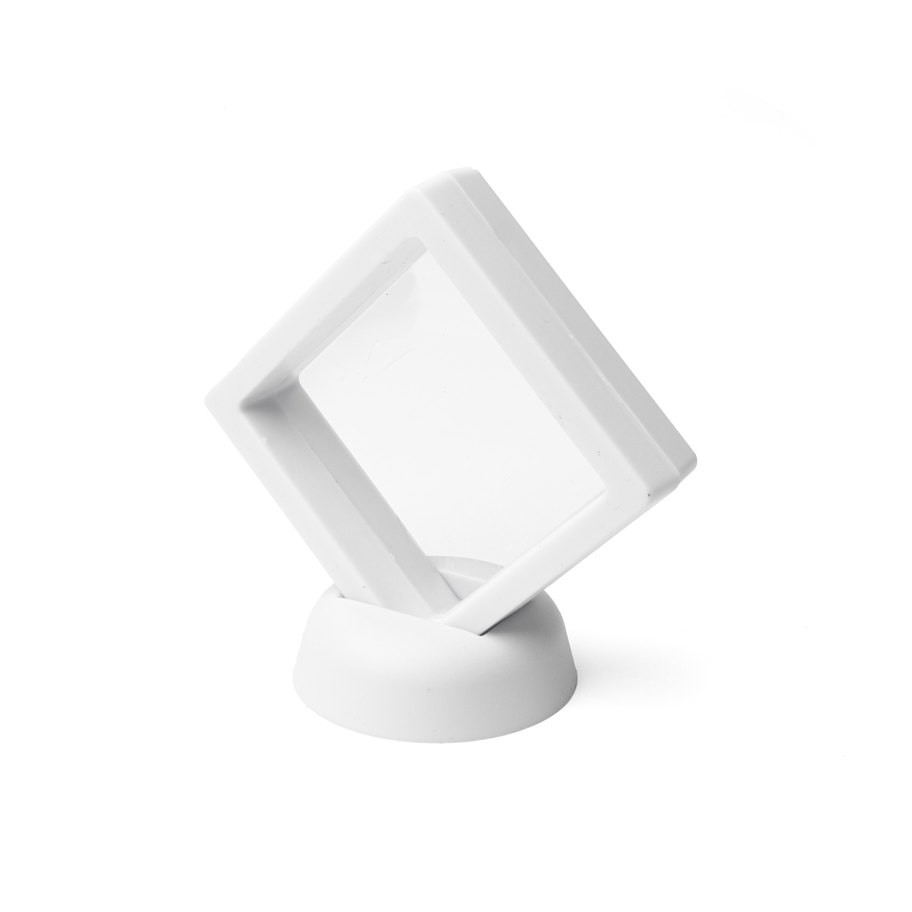 der 3D-Präsentationsrahmen mit flexibler Silikonmembran ist eine moderne Art, Objekte so zu präsentieren, dass sie wirklich hervorstechen. Zwei durchsichtige, elastische Membranen umhüllen sanft das eingefügte Objekt, so dass es in der Mitte des Rahmens zu schweben scheint. Kein Glas, kein Klebstoff und keine komplizierte Installation erforderlich. Das Ergebnis ist sauber, elegant und sofort ins Auge fallend. Der Rahmen ist ideal für Sammlerstücke wie Münzen, Medaillen, Fossilien, Mineralien, Muscheln, Abzeichen oder Schmuck. Er kann aber auch in Geschäften und Ausstellungen eingesetzt werden, wo er Produkte auf moderne und attraktive Weise präsentiert. In den eigenen vier Wänden dient er als originelle Dekoration, die dem ausgestellten Objekt Einzigartigkeit verleiht. Und wenn Sie auf der Suche nach einer unkonventionellen Form der Geschenkverpackung sind, wird dieser Rahmen einen guten ersten Eindruck hinterlassen. Der Kunststoffrahmen ist aufklappbar und besteht aus zwei festen Hälften, an denen jeweils eine flexible, transparente Silikonmembran angebracht ist . Nach dem Öffnen legen Sie den Gegenstand hinein und schließen den Rahmen. Die Membranen verschmelzen miteinander, schmiegen sich sanft an das Objekt und halten es fest an seinem Platz. Aufgrund ihrer extremen Elastizität können sie sich bis auf etwa 2 bis 3 Zentimeter dehnen, so dass sie problemlos größere oder sperrige Gegenstände aufnehmen können. Der "Schwebeeffekt" und die volle Sichtbarkeit von allen Seiten bleiben dabei erhalten. Nach der Benutzung des Rahmens kann die Membran mit einer Heißluftpistole oder einem gewöhnlichen Föhn wieder gespannt werden - ein kurzes Aufwärmen genügt, und sie kehrt in ihre ursprüngliche Form zurück. Wenn sie schmutzig wird, kann sie mit warmem Wasser und Seife gewaschen werden. Auf diese Weise bleibt der Rahmen lange Zeit wie neu und kann für verschiedene Gegenstände wiederverwendet werden. Der Rahmen erfordert außerdem den Kauf von Standfüßen, die wir ebenfalls in unserem E-Shop anbieten. Material des Rahmens: ABS material Membrane: Silikon Abmessungen der Membran: (Platz für den eingelegten Gegenstand): 5,3x5,3cm Gesamtabmessungen des Rahmens: 7x7x2cm Paket: Rahmen 1pc