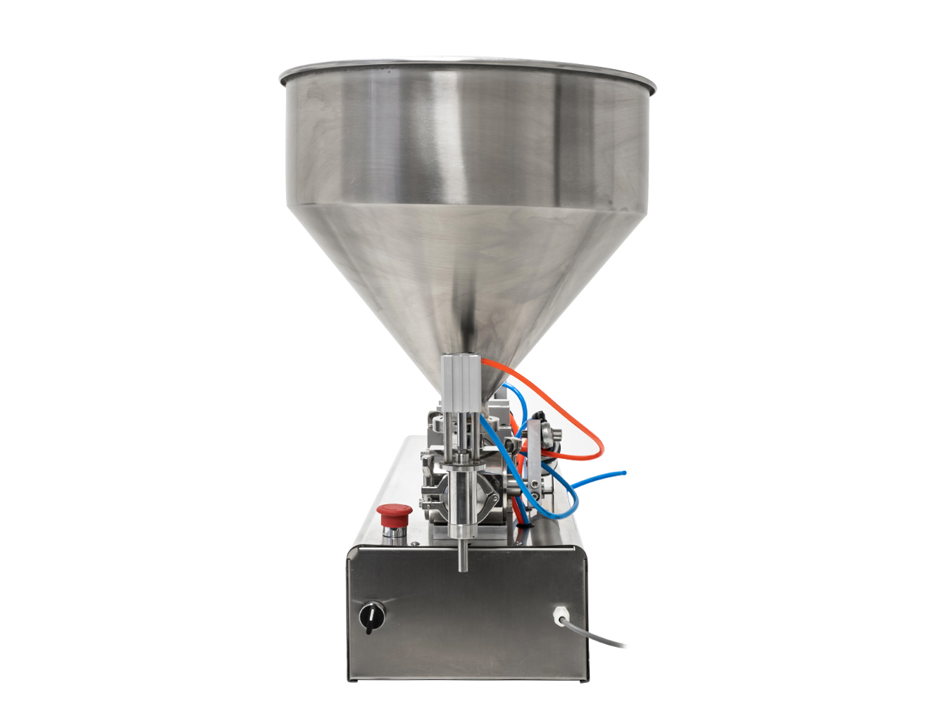 Der pneumatische Füller ist für die Abgabe von flüssigen und halbflüssigen Produkten wie Ölen, Farben, Sirup, Joghurt, Ketchup oder Senf bestimmt. Er ist nicht geeignet für feste oder sehr dicke Mischungen mit festen Stücken, wie z.B. Pasteten oder Brotaufstriche.