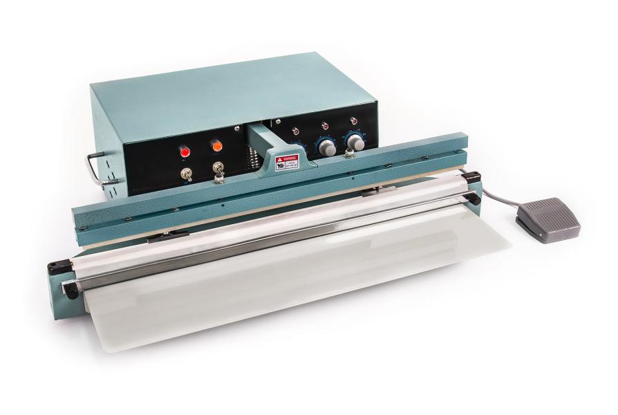 Dieses Impulsschweißgerät bietet im Vergleich zu herkömmlichen Hebelschweißgeräten eine physikalisch viel einfachere Bedienung, eine ausgefeiltere Steuerung und eine sehr robuste Ganzmetallkonstruktion. Die obere Klemmbacke hat nicht die Form eines manuellen Hebels, der von Hand gegen den Beutel gedrückt werden muss, sondern die Form einer vollautomatischen Klemmbacke, die von einem leistungsstarken Magneten gesteuert wird, der, wenn er durch ein Fußpedal betätigt wird, ihn fest gegen den Schweißdraht drückt und den Schweißzyklus startet. Da der Mensch keinen Einfluss auf die Impulslänge hat, sehen alle Schweißnähte gleich aus - professionell.