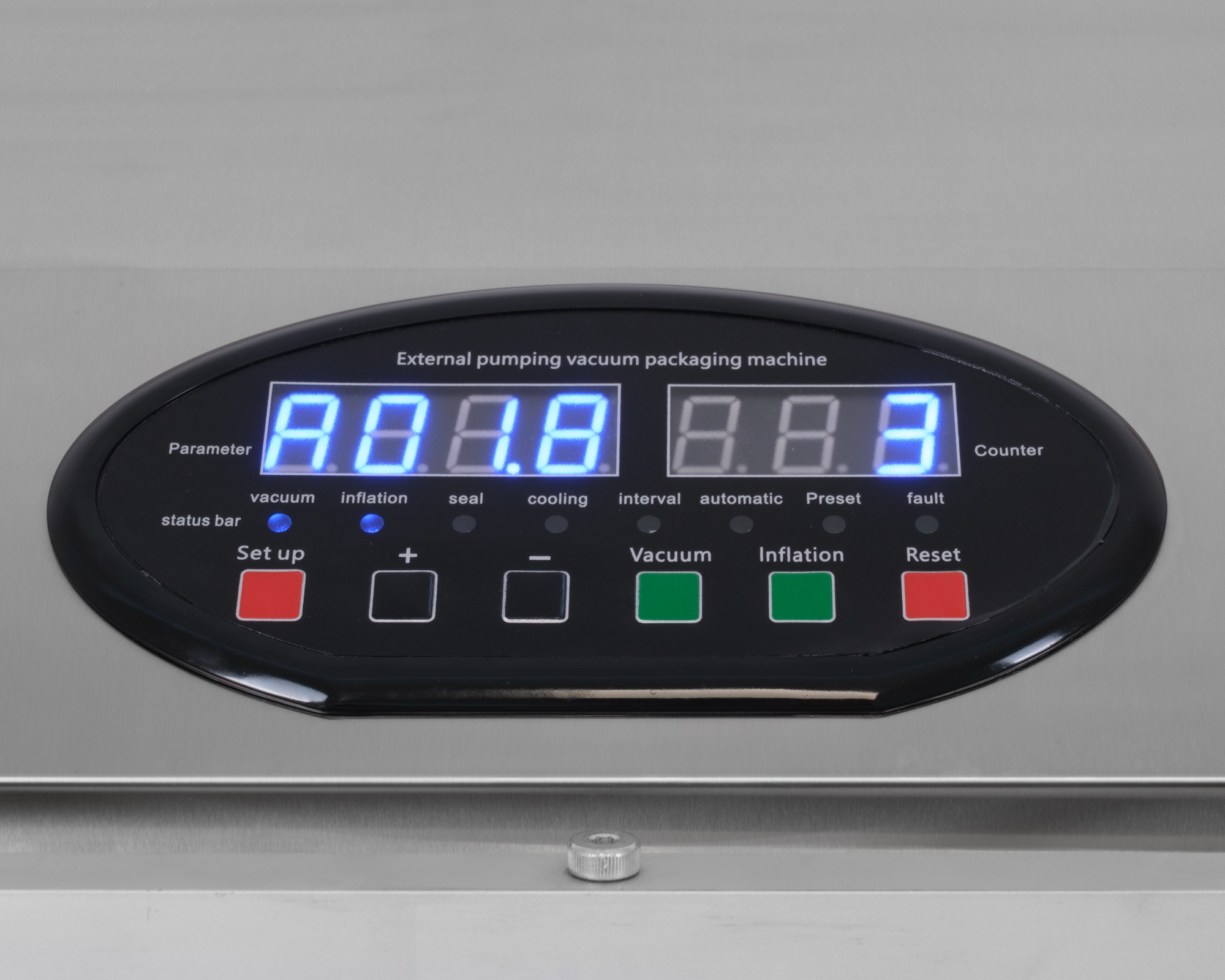 Die Bedienung ist einfach und intuitiv. Nach dem Einlegen des Beutels in den Schweißbalken wird der gewählte Prozess automatisch ausgeführt - Luftabsaugung, Gasbefüllung, Bildung einer festen 8-mm-Schweißnaht und Kühlung.