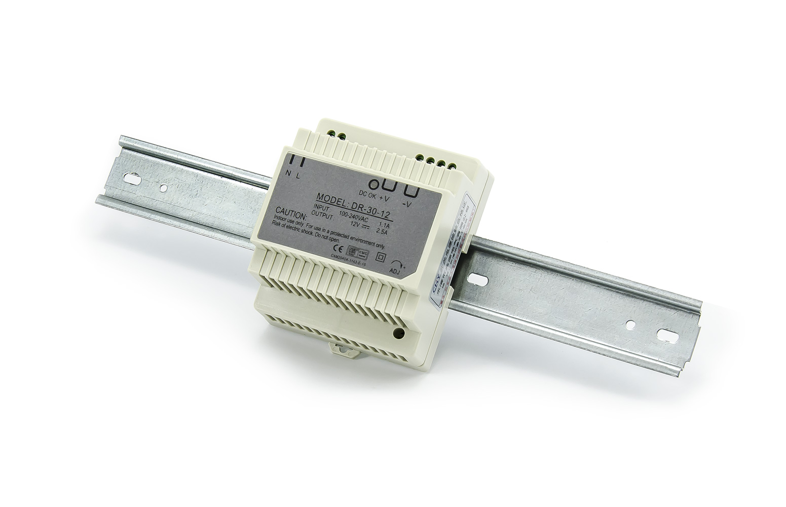 Die Stromversorgungen der Serie DR sind stabilisiert, mit fester Ausgangsspannung, sind galvanisch vom Netz getrennt und werden zur Versorgung von Steuerungen und Automaten in Schaltschränken eingesetzt, die für ihren Betrieb eine Gleichspannung von 12V benötigen.