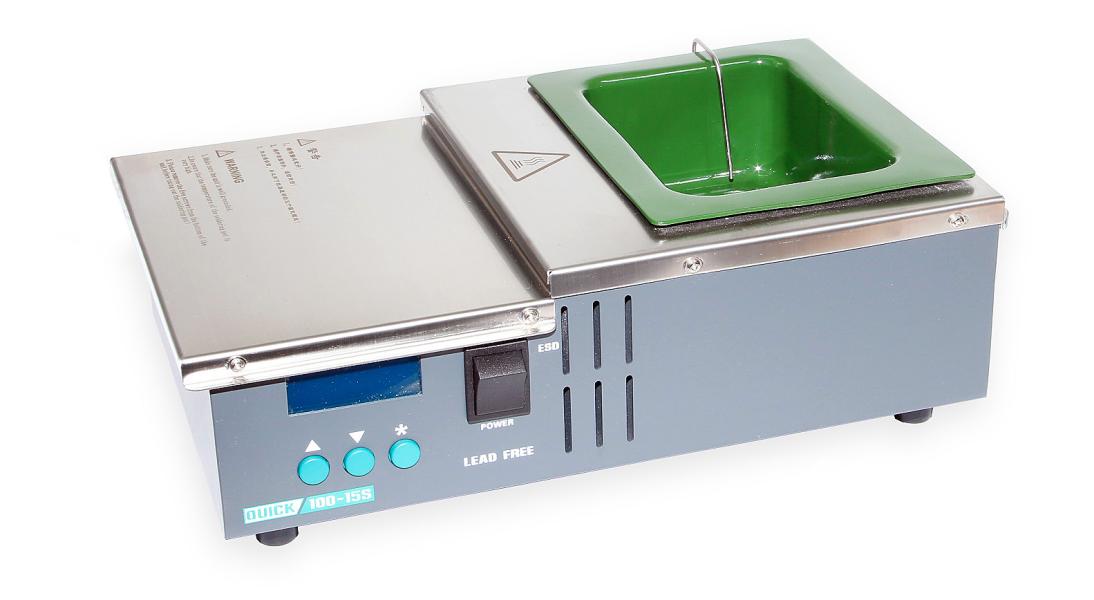 Leistungsstarkes Lötbad des renommierten Herstellers QUICK mit emaillierter Oberfläche, digitaler Temperaturanzeige, Timer und digitaler Kalibrierung. Die emaillierte Oberfläche des Lötbades unterliegt auch bei hohen Temperaturen keiner Oxidation und wird nicht durch Schmelze erodiert.