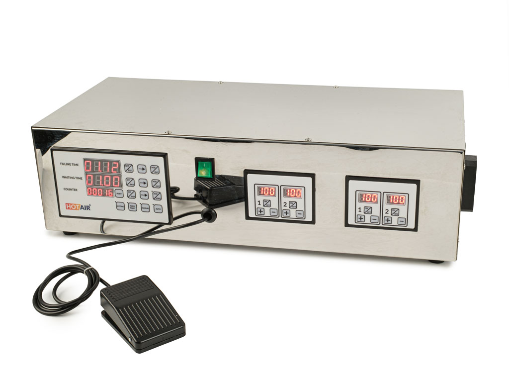 Dieperistaltische Pumpe mit Kontrollwaage besteht aus drei Hauptelementen: der Waage, der peristaltischen Pumpe und dem Steuergerät. Eine Peristaltikpumpe mit einer Durchflussrate von bis zu 90ml/min (90ml = ca. 90g destilliertes Wasser, d.h. die Pumpgeschwindigkeit beträgt max. 90g bei der Viskosität des Wassers in 1 min) und einem Einlass/Auslass für einen 5 mm Silikonschlauch fördert die Flüssigkeit oberhalb der Waage in eine Dosiernadel, die an einem höhenverstellbaren Arm 3-15 cm vom Boden der Waagschale montiert ist, auf der ein Behälter/Flasche für die dosierte Flüssigkeit bereitgestellt wird.die Waage hat eine maximale Wägekapazität von 500 g. Dieses Gewicht entspricht der Summe von maximal einer Dosis von 50 g + einer Reserve von bis zu 450 g pro Behälter/Flasche. Die an die Waage angeschlossene Steuereinheit kontrolliert und misst in Echtzeit das Gewicht der Dosis auf der Schale. Das Wiegen der einzelnen Chargen kann von 0,5g bis 50g mit einer Genauigkeit und Auflösung von 0,1g eingestellt werden.