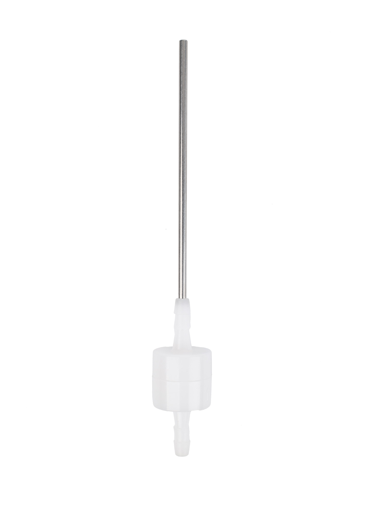 Abfüllvorrichtung mit Rückschlagventil für die präzise Dosierung von Flüssigkeiten in automatischen und manuellen Dosiersystemen. Die Kombination aus Edelstahlnadel und Kunststoffkörper gewährleistet eine lange Lebensdauer, chemische Beständigkeit und zuverlässigen Betrieb.