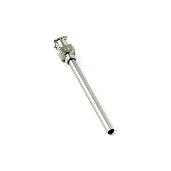Stumpfe Ganzmetall-Applikationsnadeln mit einer Kanülenlänge von 38,1 mm (1,5") für die genaue Dosierung von mittel- bis sehr zähflüssigen Flüssigkeiten. Ideale Dosierspitze für Roboteranwendungen mit einem Druck von bis zu 6,8 bar. Der Nadelkörper und die Nabe sind aus rostfreiem Stahl gefertigt und mit einer Kapillare aus rostfreiem Edelstahl versehen. Bei der Herstellung wird Wert auf die Oberflächenqualität und die genaue Einhaltung der Innendurchmesser der Nadel gelegt, daher wird die Oberfläche der Kapillare elektropoliert.