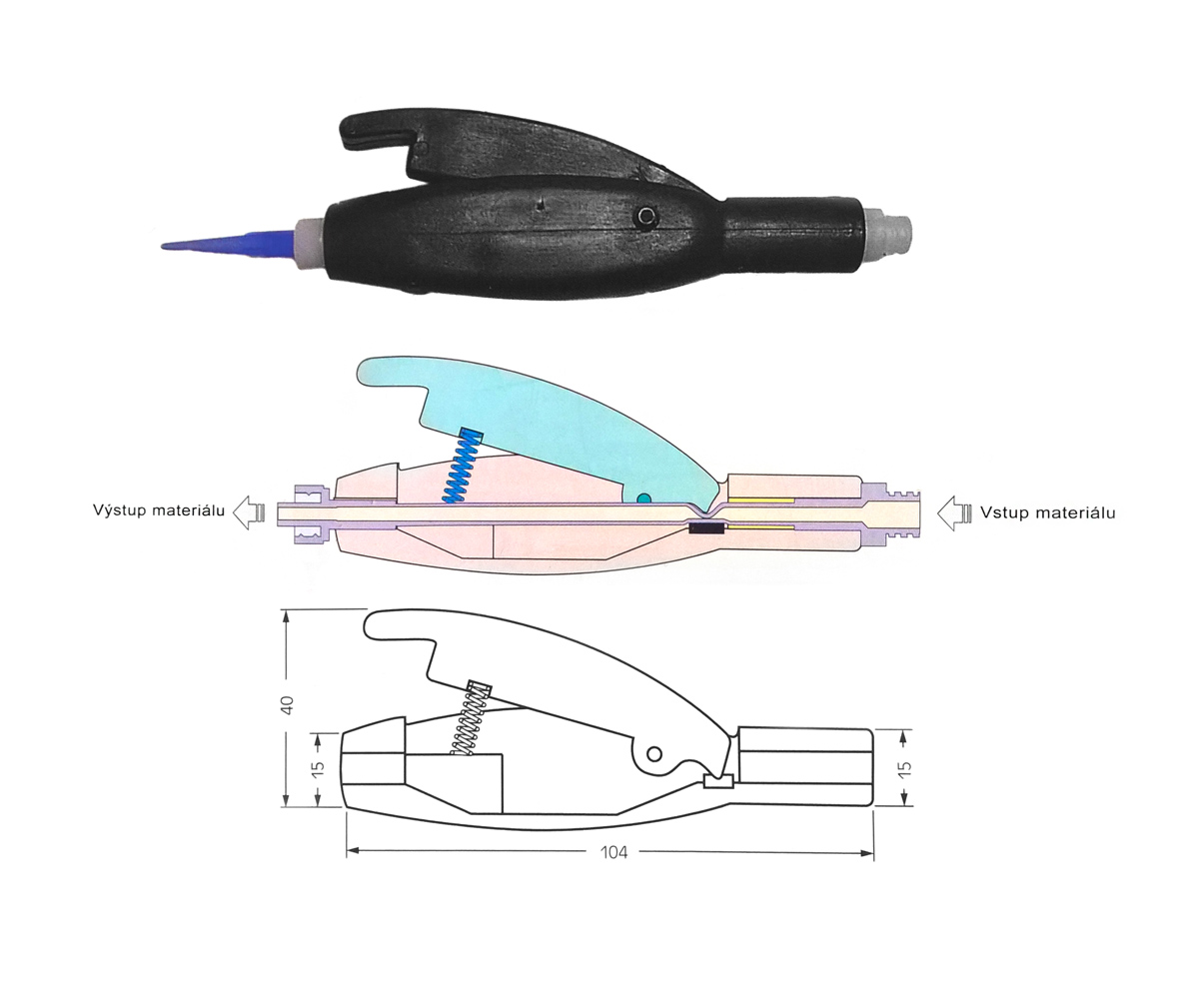 Das Ventil ist im Ruhezustand geschlossen, der Stößel verschließt den Abgabeschlauch durch Federkraft. Wird der Hebel gedrückt, wird der Quetschschlauch freigegeben. Das Ventil enthält außerdem eine kleine Fixierschraube, mit der der maximale Hebeldruck und damit die Ventilöffnung bei voller Betätigung begrenzt werden kann.