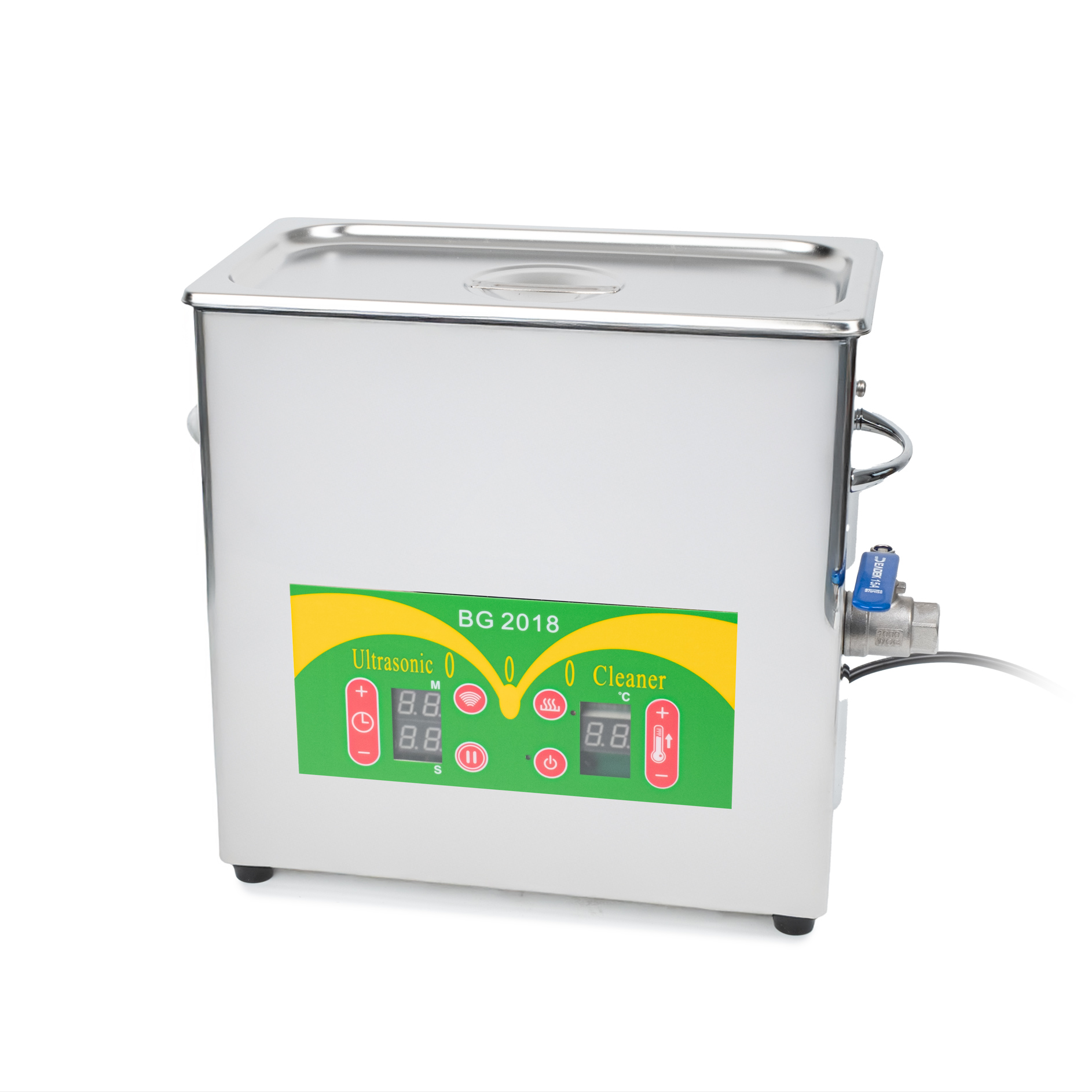 Leistungsstarkes 5,5l-Edelstahl-Ultraschallbad mit Ablasshahn und kontrollierter Erwärmung des Reinigungsmediums. Die Ultraschall-Reinigungsleistung beträgt 150W und die Heizleistung 210W. Die Steuerung des Bades ist voll digital; die Temperatur des Reinigungsmediums wird per Tastendruck eingestellt, ebenso wie die Reinigungszeit. Mit dem Timer können Sie die Betriebszeit bis zu 99 Minuten mit einer Auflösung in Sekunden einstellen. Die Badtemperatur ist wählbar von 0-90°C.