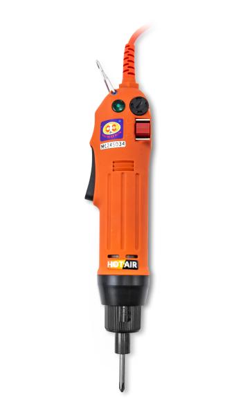 Elektro-Drehmomentschrauber OS-90 mit Winkelkopf mit Drehmomentbereich 0,3-2,5Nm, Drehzahl bis 1300 U/min, Schrauberkopf ist für 6,35 HEX Sechskantbits ausgelegt. die Drehmomentkraft ist über eine Dreh-Federkupplung einstellbar. Deutlich hör- und spürbares Überspringen bei Erreichen des eingestellten Anzugsdrehmoments. Der Motor-Schaltknopf ist zur besseren Ergonomie beim Arbeiten im Griff integriert. Ein Schiebeschalter am Körper des Werkzeugs ermöglicht die Änderung der Drehrichtung. Der Schraubendreher wird über ein 1,7 m langes Netzkabel mit 230 V/50 Hz versorgt. Öse am Körper des Schraubendrehers zur Befestigung am Balancer. Der Körper des Werkzeugs ist für einen höheren Arbeitskomfort mit einer rutschfesten Beschichtung versehen. Der Drehmoment-Schraubendreher wird verwendet, um Schrauben präzise und immer gleich anzuziehen, durch Drehen des Kopfes wählen Sie die Drehmomentkraft, die dauerhaft nach Ihren Bedürfnissen eingestellt bleibt, es ist für die industrielle und Gürtel Produktion oder Service-Center konzipiert. Der abgewinkelte Kopf des Schraubendrehers ermöglicht den Zugang zu schwer zugänglichen Stellen, der Kopf kann um seine Achse gedreht werden. Die gute Ergonomie, das vibrationsdämpfende Design, der leistungsstarke Elektromotor und die Möglichkeit, den Schrauber an einem Balancer zu montieren, erleichtern dem Bediener die Arbeit bei der Wartung oder Herstellung von elektronischen oder mechanischen Geräten von der Automobilindustrie bis zur IT-Technik. Das präzise einstellbare Drehmoment sorgt dafür, dass alle Schrauben gleichmäßig angezogen werden, und der Balancer entlastet die Hände und den Rücken des Bedieners des Drehmomentschraubers. Im Lieferumfang enthalten sind ein elektrischer Drehmomentschraubendreher, ein Schrauben- und Bitmagnetisierer/Entmagnetisierer und ein Satz mit 2 Kreuzschlitzbits. Der Balancer ist nicht enthalten, Sie können ihn HIER kaufen .